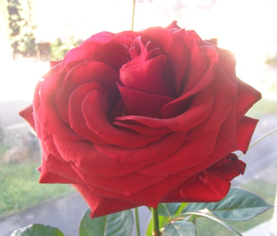 Für mich persönlich ist in diesem JahresWechsel auch noch *etwas* besonderes geschehen. Ich habe von einer lieben MitReisenden am Heiligabend eine langstielige, rote Rose per Fleurop geschickt bekommen. In Würzburg war es eisig kalt und der Lieferant stand mit dieser Rose nur in Folie eingepackt vor meiner Tür. Ich als Gärtnerin des Herzens fühlte mich erschüttert ....... und nahm *sie* erst einmal voller Freude an. Was nun? Ich legte die Rose - so wie sie war - 3 Stunden in einen mäßig warmen Raum und redete ab und an mit ihr, war mir allerdings gar nicht so bewußt. Dann wickelte ich sie aus, schnitt den Stiel neu an und stellte sie in ganz lauwarmes Wasser an mein Küchenfenster. Sie erblühte von Stunde zu Stunde zu diesem Prachtexemplar ........